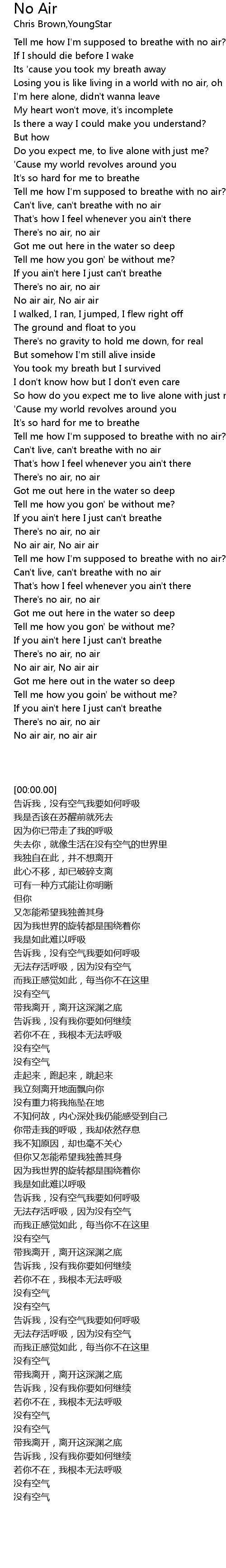Can't live, can't breathe with no air |
