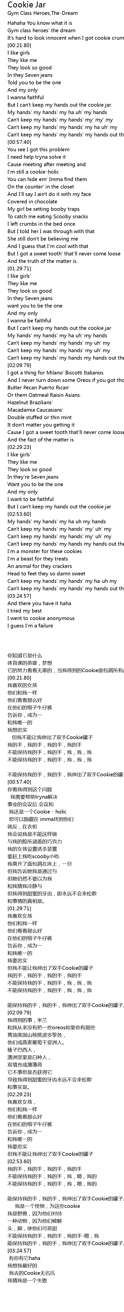 Can't keep my hands' my hands my hands out the cookie jar. |