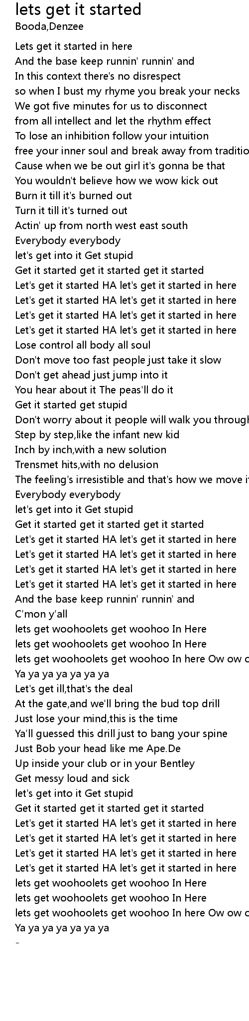 | Let's get it started HA let's get it started in here | |