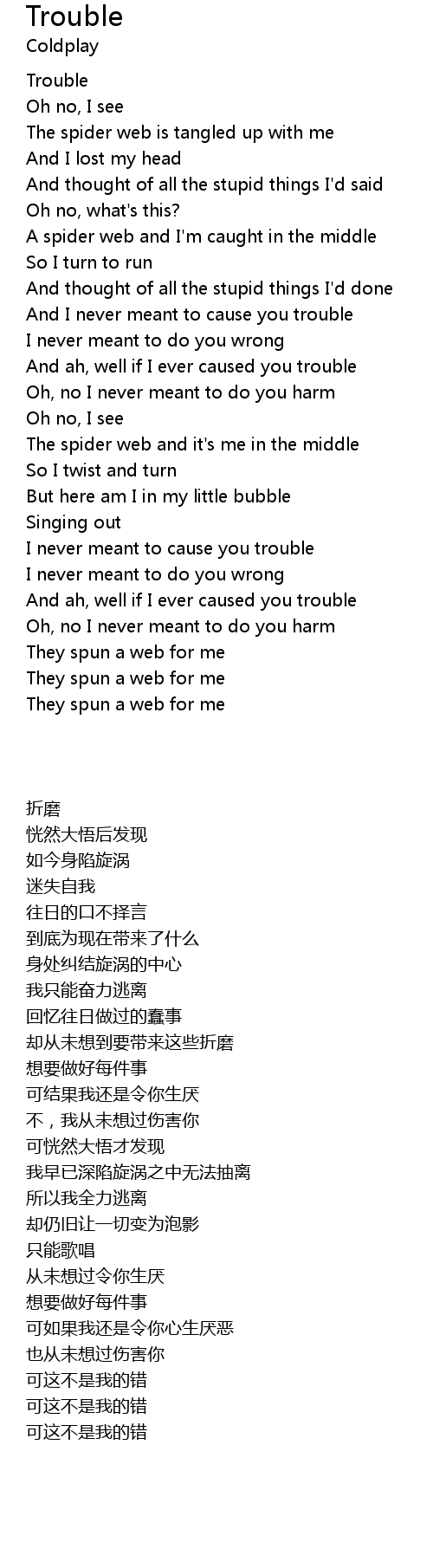 And I never meant to cause you trouble |