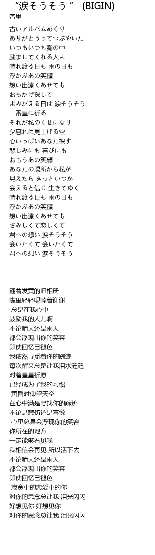 君への想い 涙そうそう |
