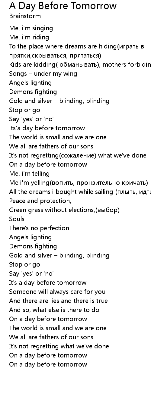 | Its' a day before tomorrow | |