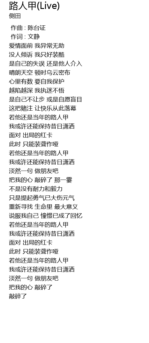 | [01:17.41] | ruò tā hái shì dāng nián de lù rén jiǎ |