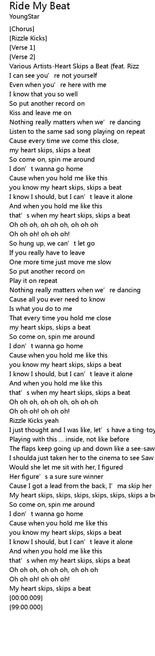 | [00:03.11] | Various Artists-Heart Skips a Beat (feat. Rizz |