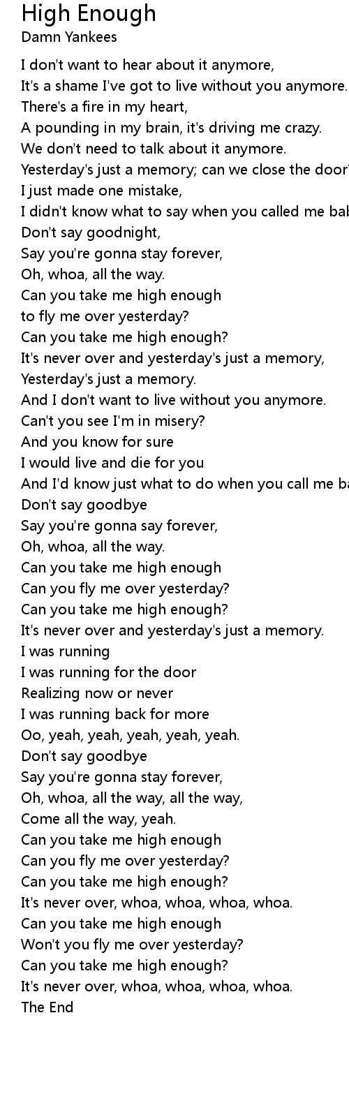 Can you take me high enough |