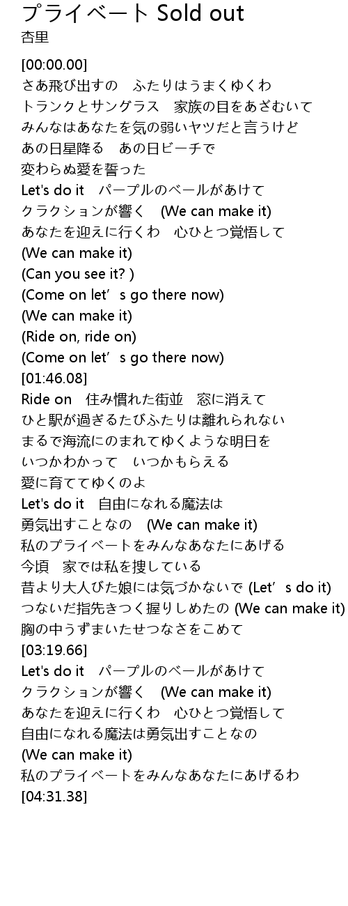 | 歌曲 | プライベート Sold out |
