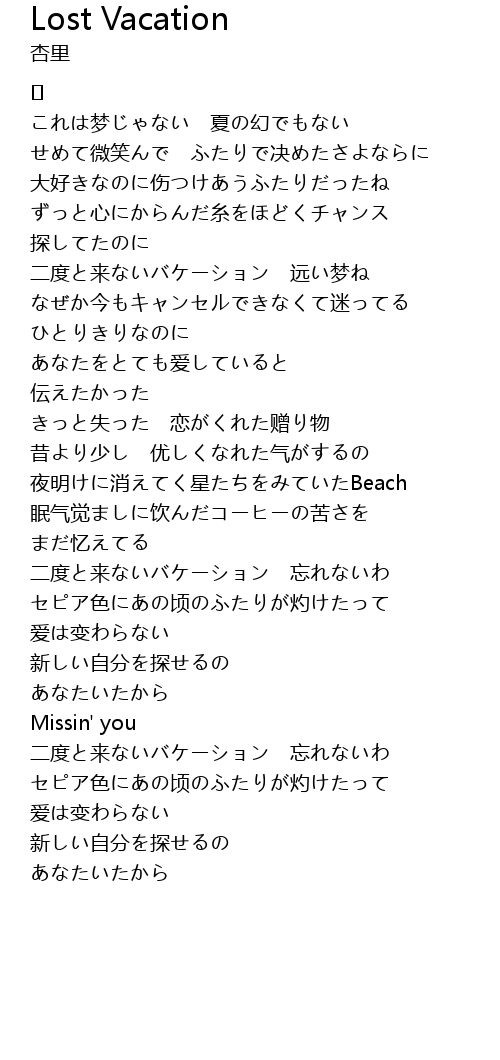 二度と来ないバケーション 远い梦ね |