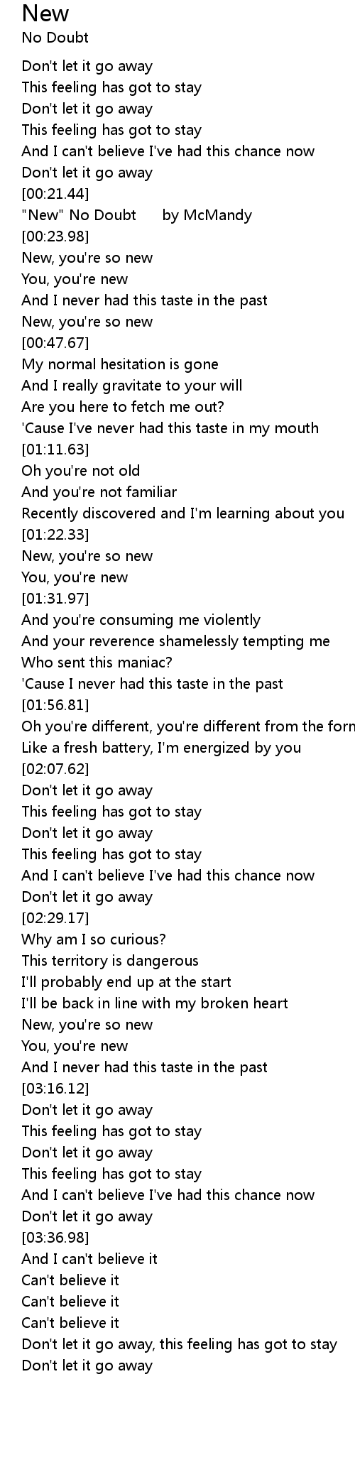 | [03:50.49] | Don't let it go away, this feeling has got to stay |