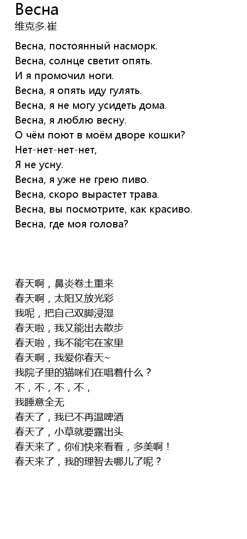 | 歌曲 | Весна |