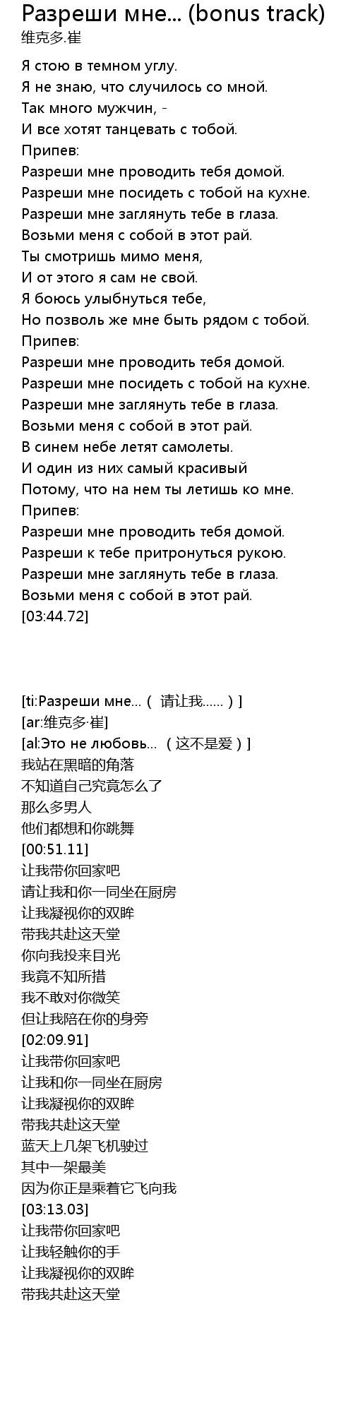 | [00:51.50] | Разреши мне проводить тебя домой. |