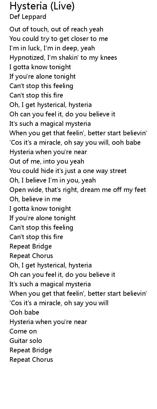 Oh, I get hysterical, hysteria |