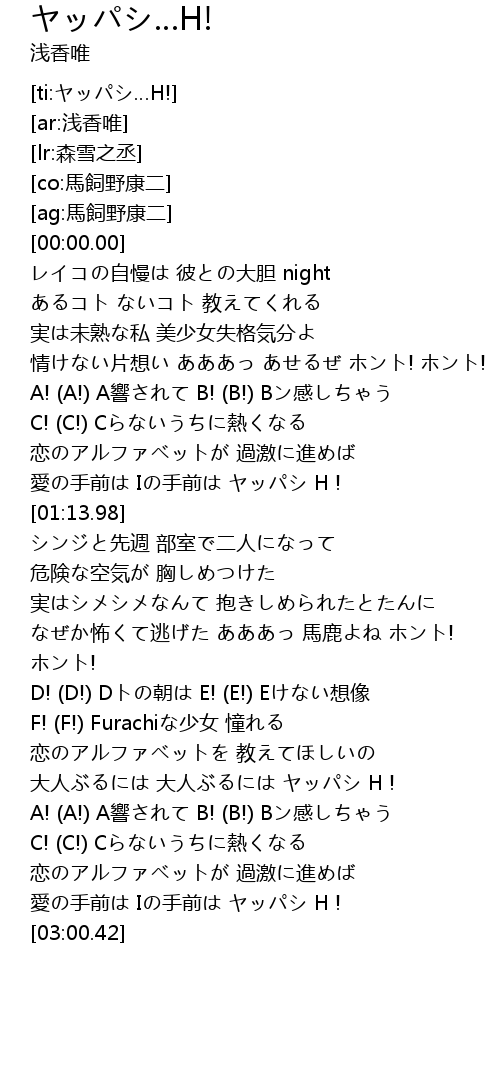 | [02:55.07] | 愛の手前は Iの手前は ヤッパシ H ! |