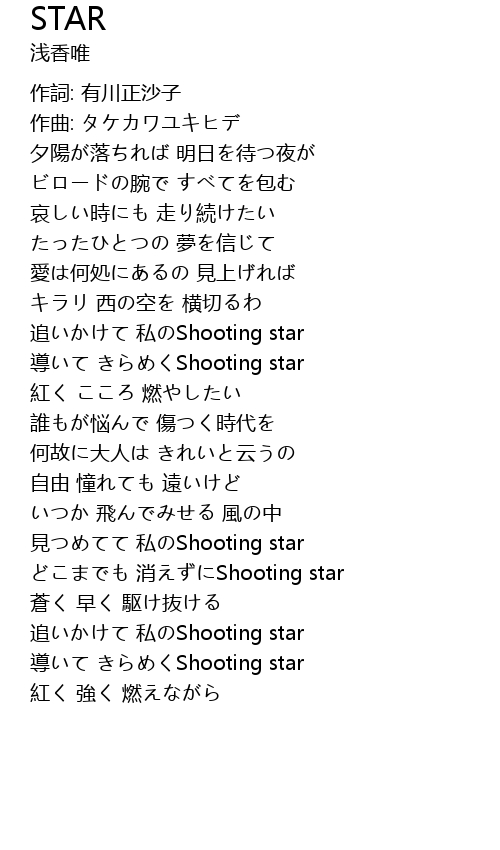 | [02:12.780] | どこまでも 消えずにShooting star |
