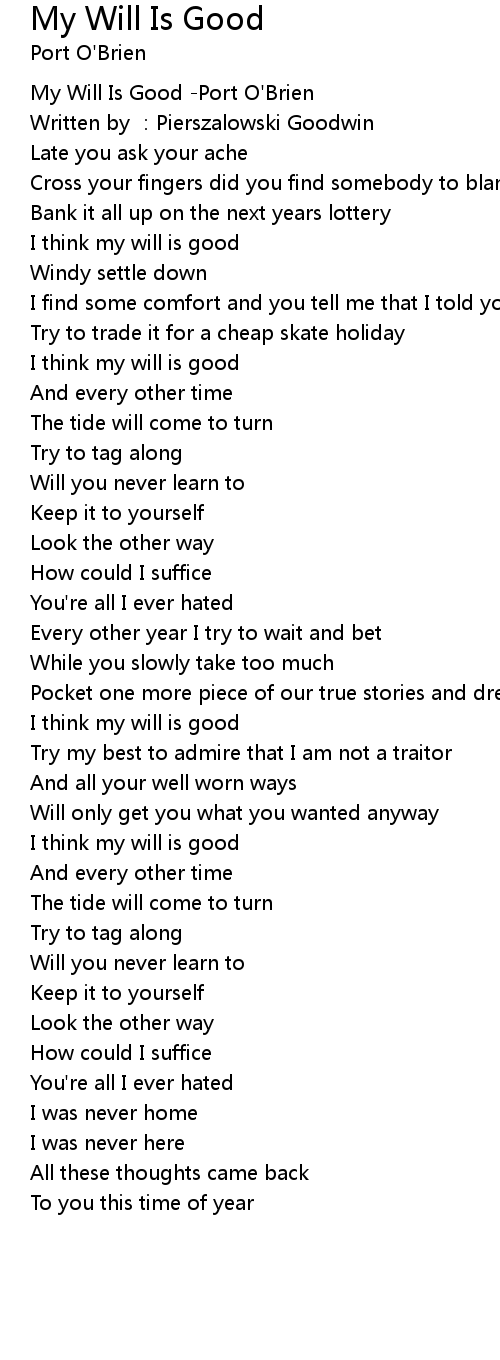 | [00:01.130] | My Will Is Good Port O' Brien |