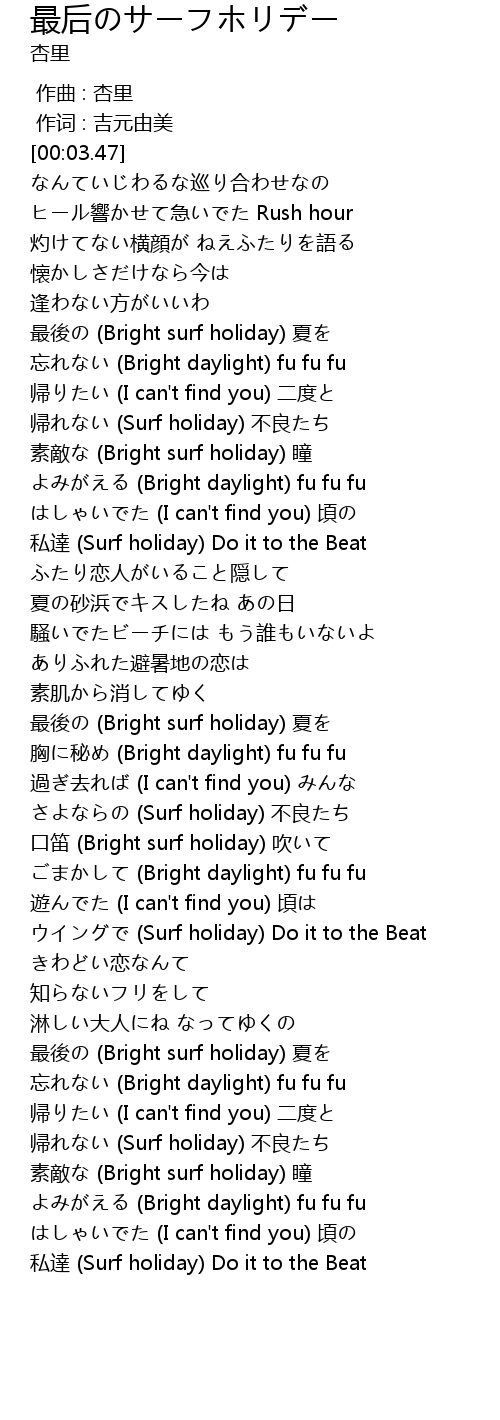 | [01:35.91] | 帰れない (Surf holiday) 不良たち |