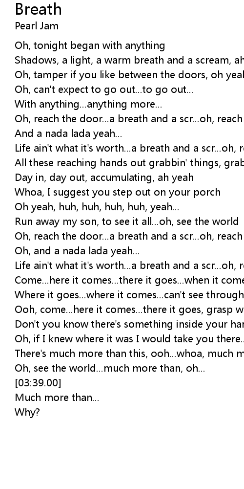 | [02:41.00] | Life ain't what it's worth...a breath and a scr...oh, reach the door |