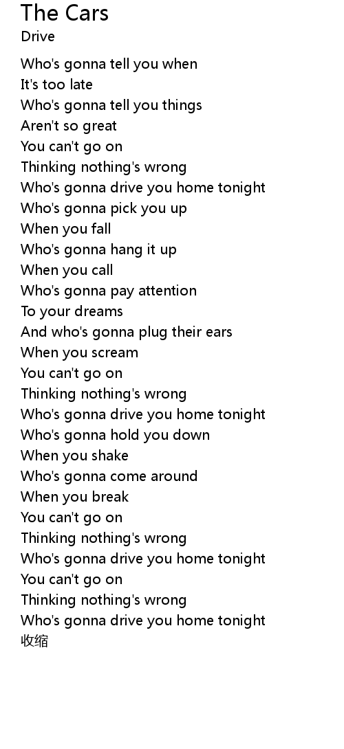| Who's gonna drive you home tonight | |