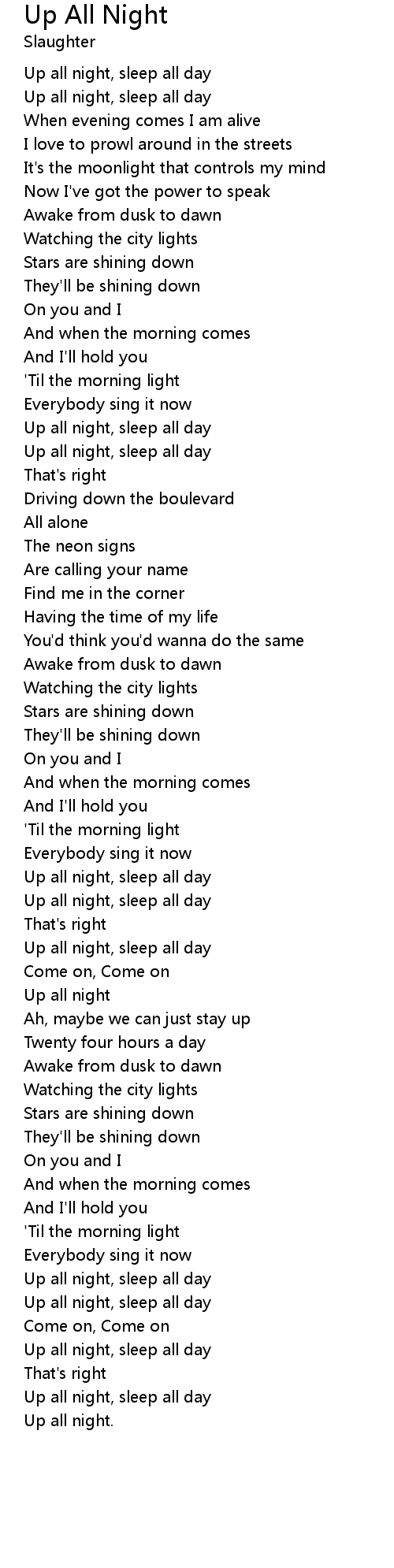 Up All Night 歌词