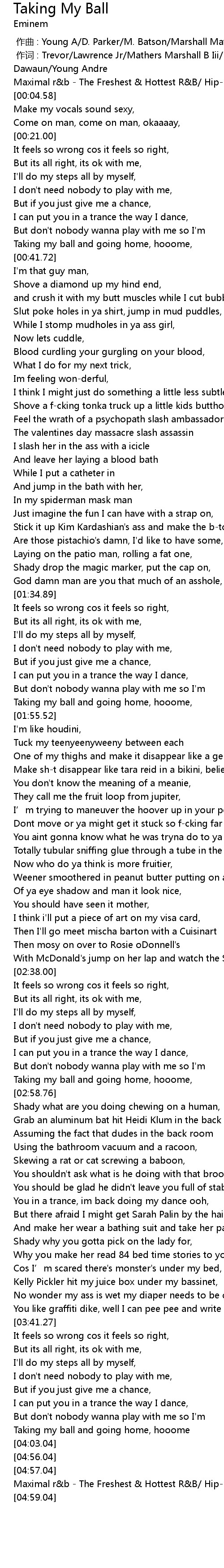 [00:00.00] zuo qu : Young A D. Parker M. Batson Marshall Mathers T. Lawrence