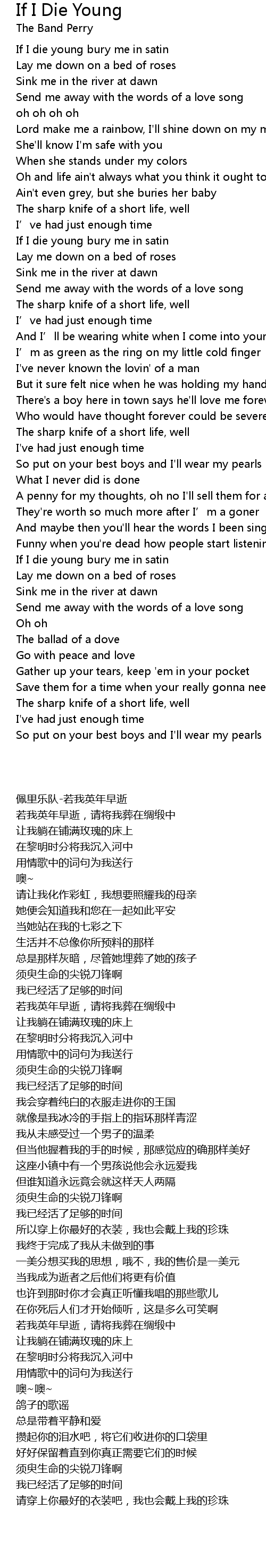 | 歌曲 | If I Die Young |