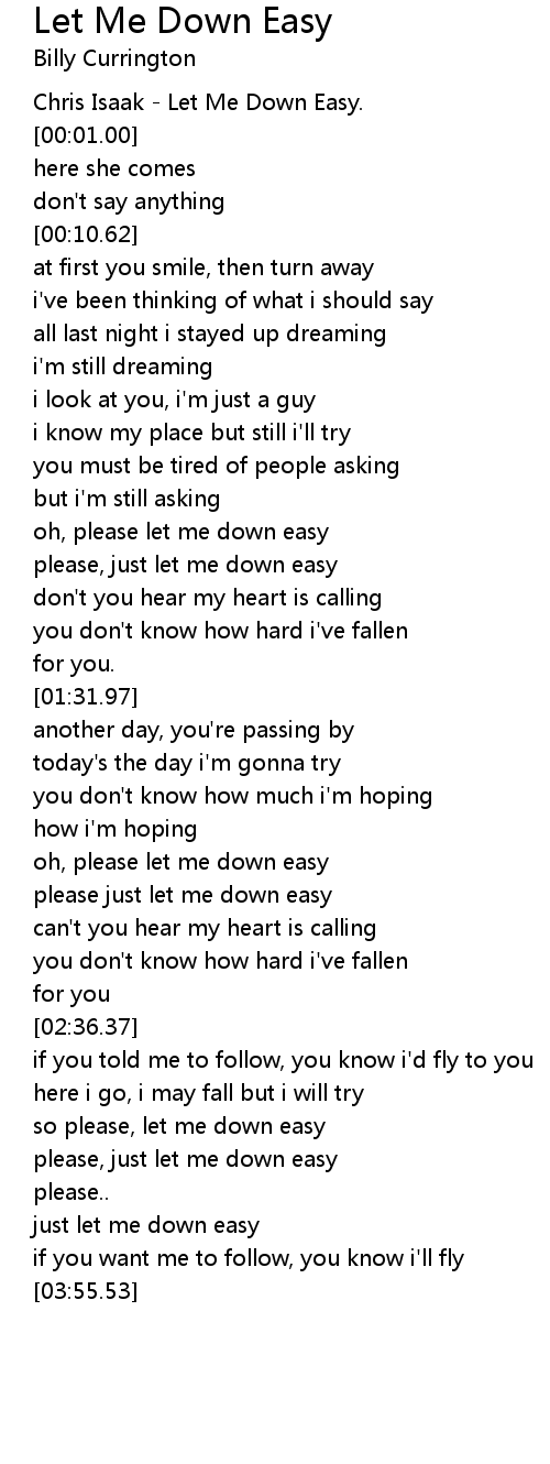 [00:00.00] Chris Isaak - Let Me Down Easy.