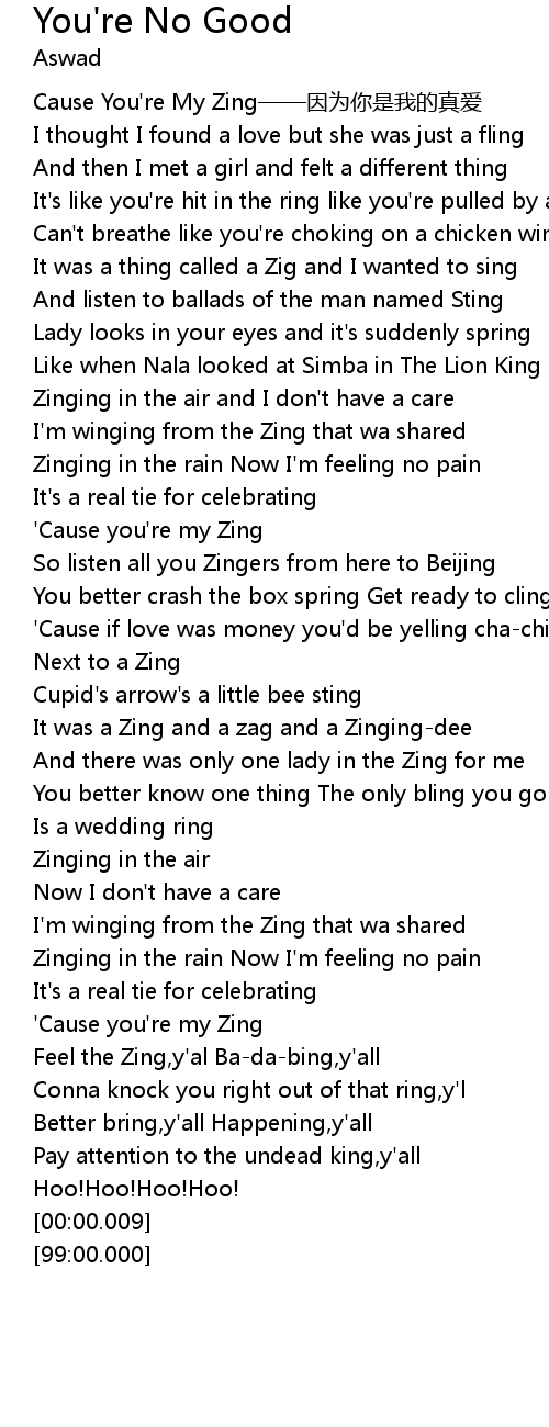 | [00:26.45] | I' m winging from the Zing that wa shared |