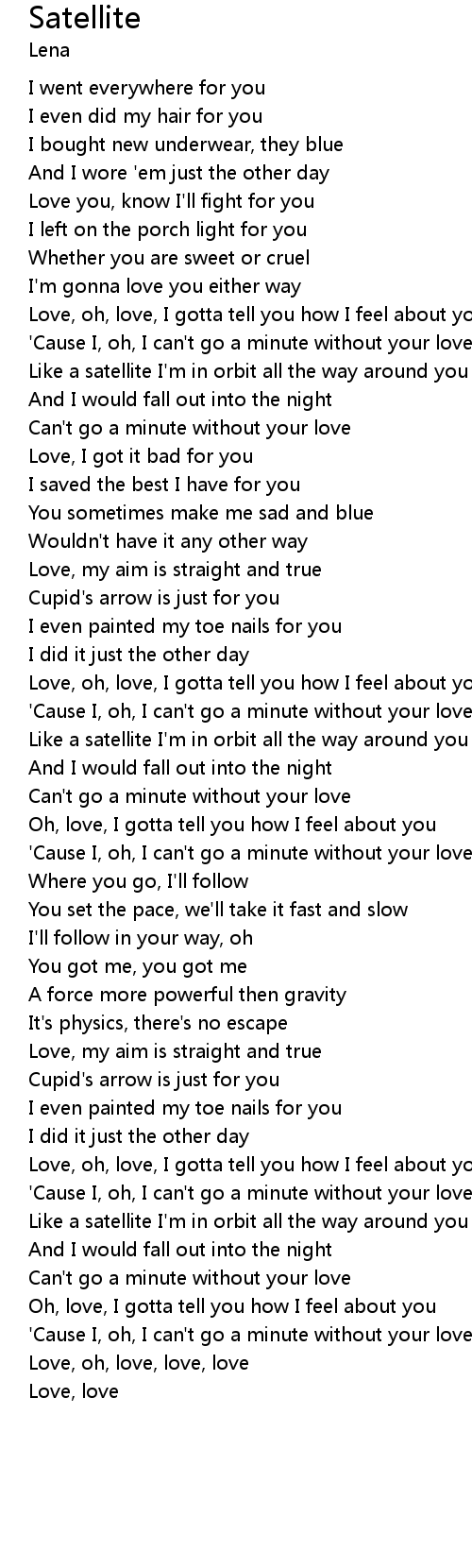 Like a satellite I'm in orbit all the way around you |