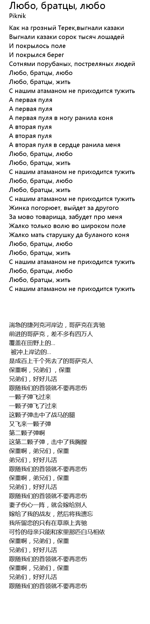 | 歌曲 | Любо, братцы, любо |