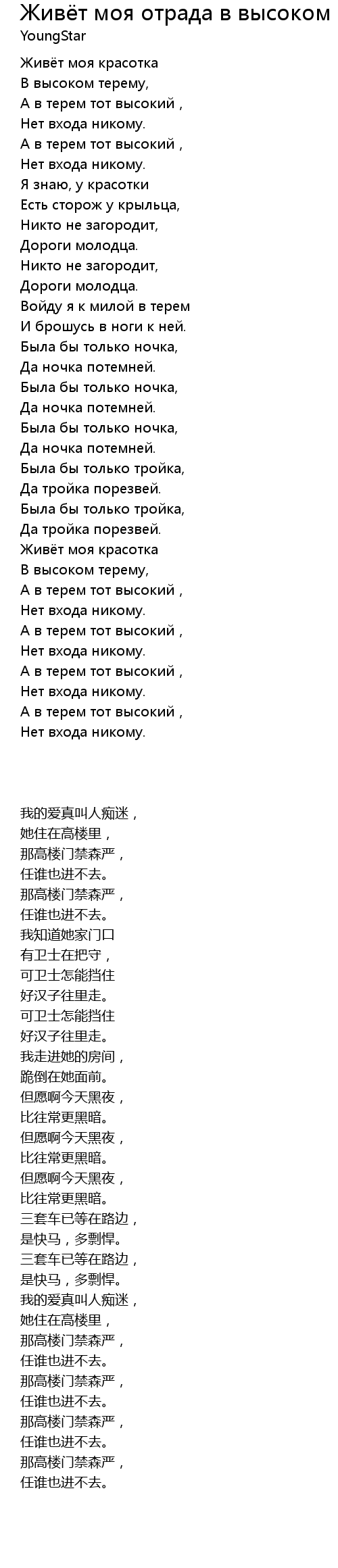 | 歌曲 | Живёт моя отрада в высоком терему |