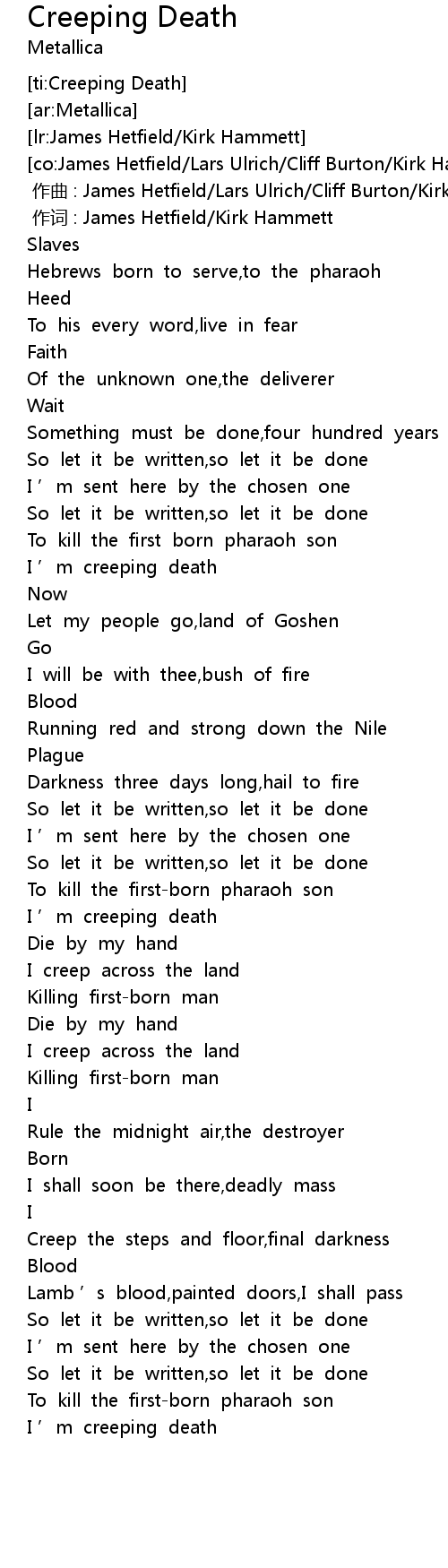 | [01:44.130] | I ’m creeping death |