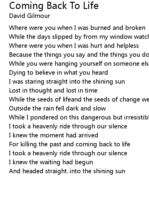 For killing the past and coming back to life |