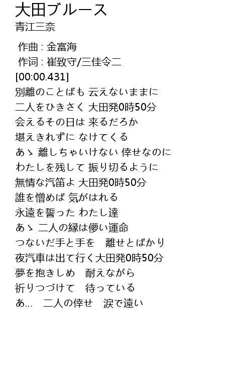 | [00:45.100] | 二人をひきさく 大田発0時50分 |