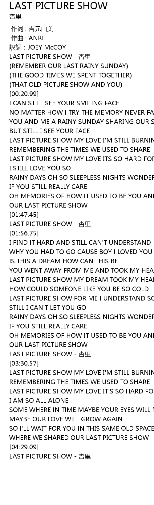| [01:50.05] | LAST PICTURE SHOW - 杏里 |