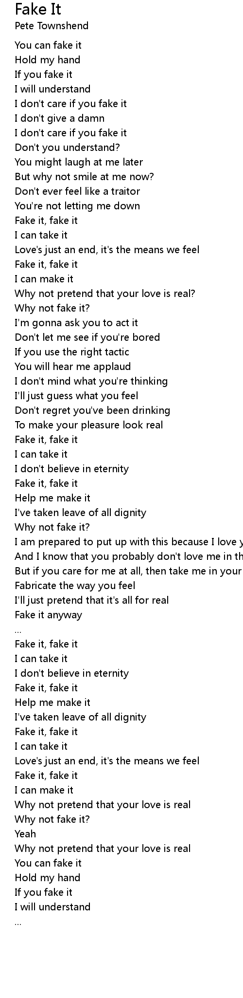 I don't care if you fake it |