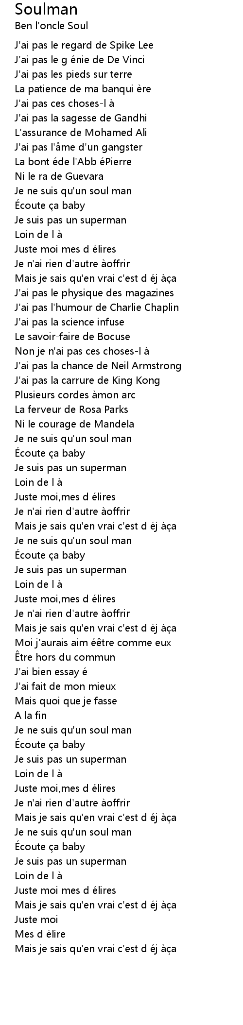 | [00:45.710] | Je ne suis qu' un soul man |