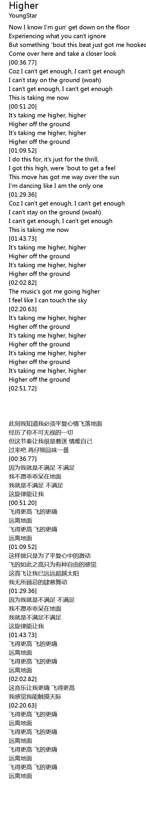 The music's got me going higher |