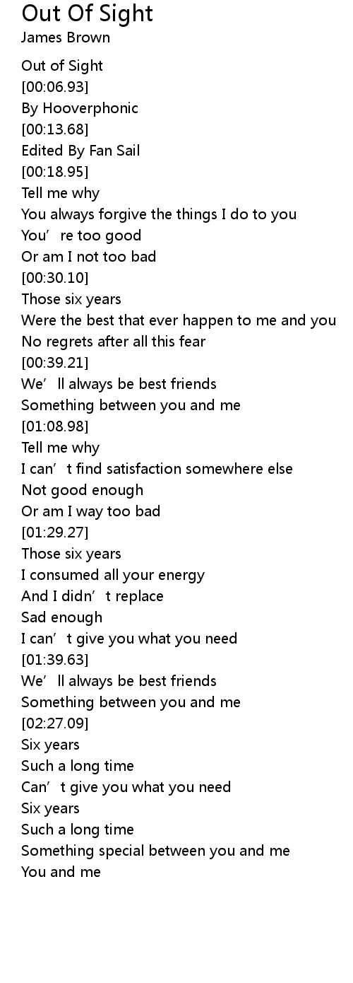 | [00:03.25] | Out of Sight |
