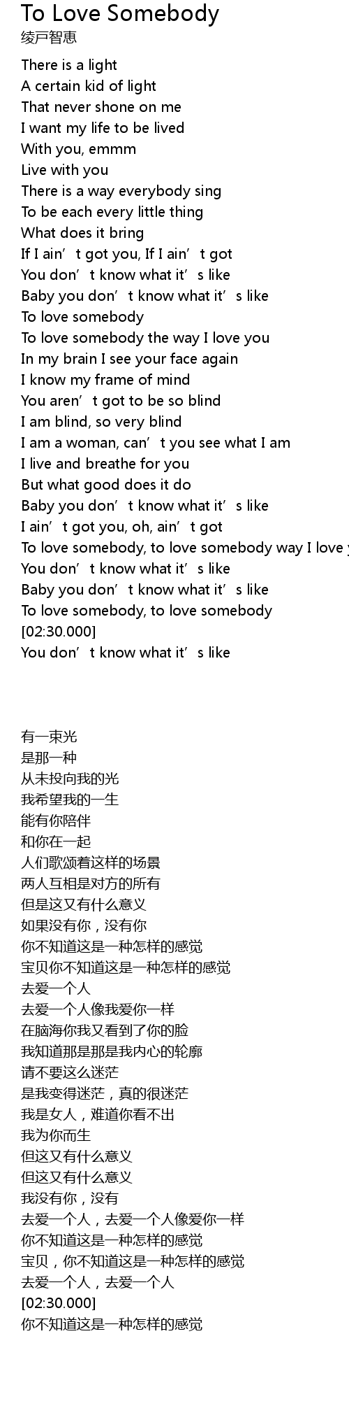 | [02:07.900] | To love somebody, to love somebody way I love you |