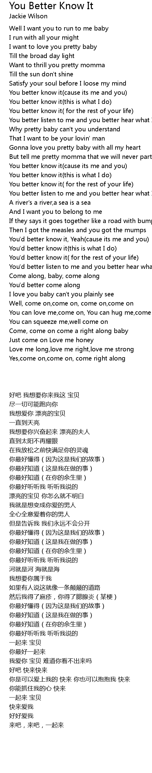 You'd better know it( for the rest of your life) |