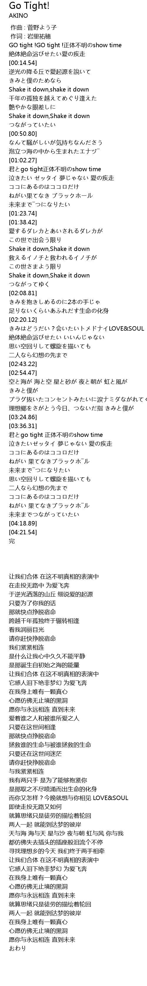 | [03:39.21] | 君とgo tight 正体不明のshow time |