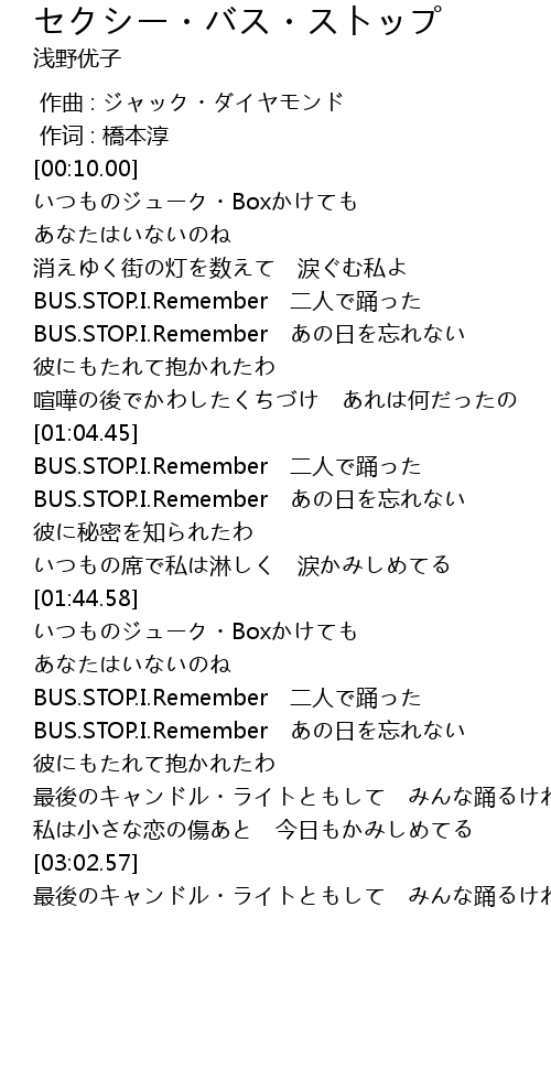 | [00:38.41] | BUS.STOP.I.Remember 二人で踊った |