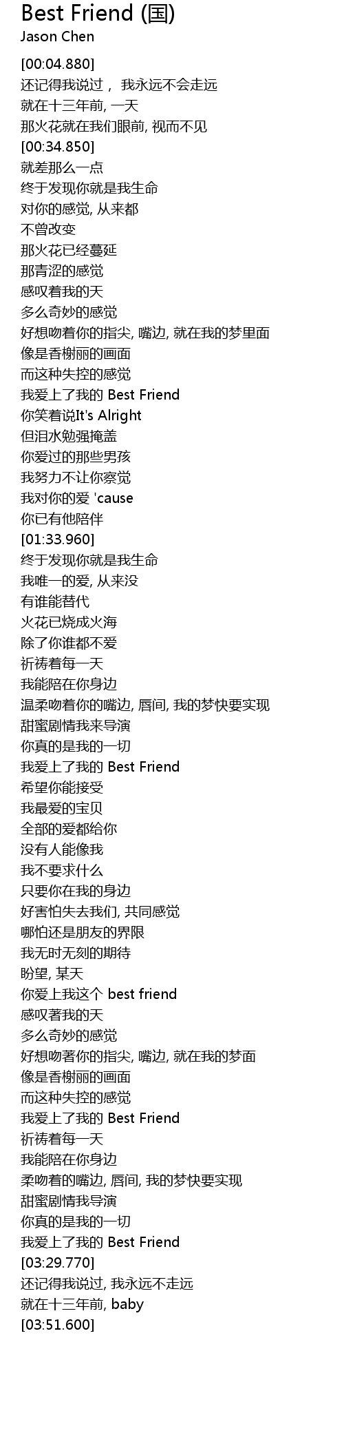 | [02:09.360] | wǒ ài shàng le wǒ de Best Friend |