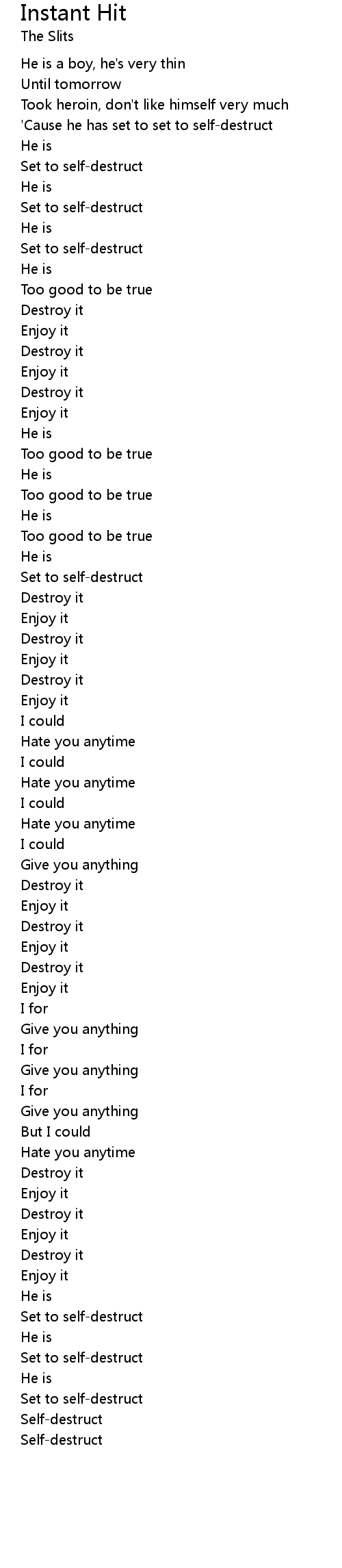 'Cause he has set to set to self-destruct |