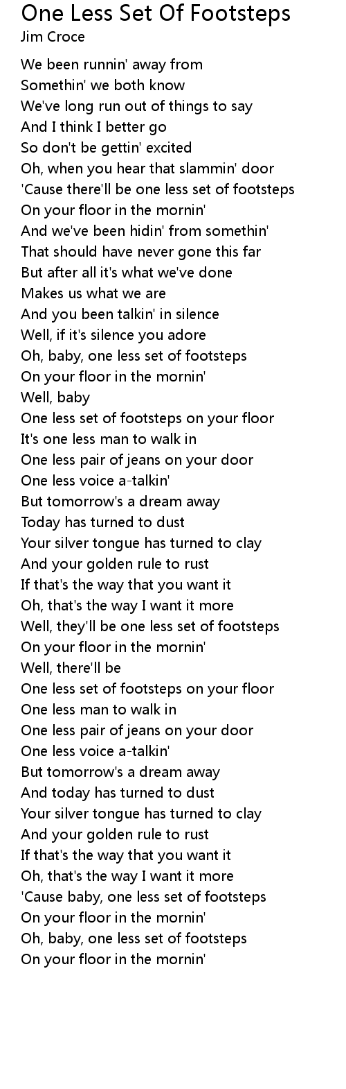'Cause baby, one less set of footsteps |