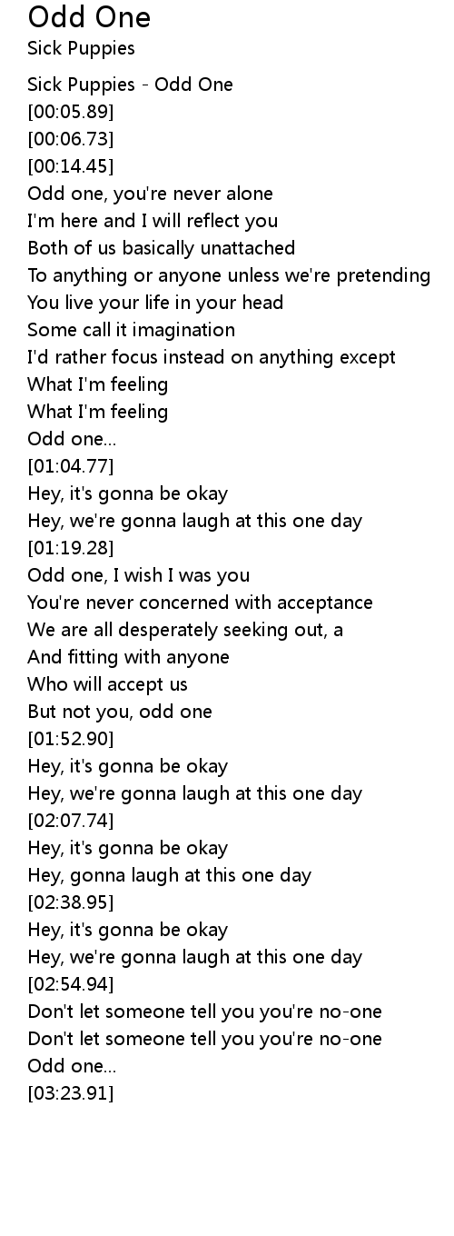 Odd one, you're never alone |
