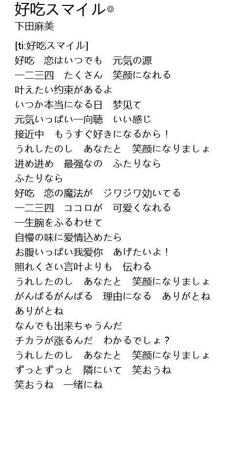| [00:21.725] | 好吃 恋はいつでも 元気の源 |