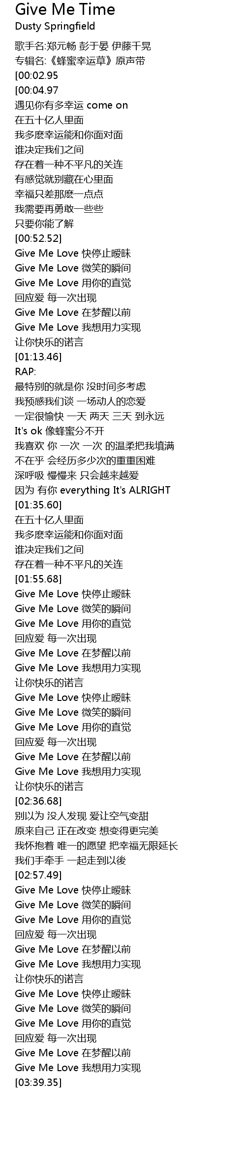 | [03:22.71] | Give Me Love kuài tíng zhǐ ài mèi |