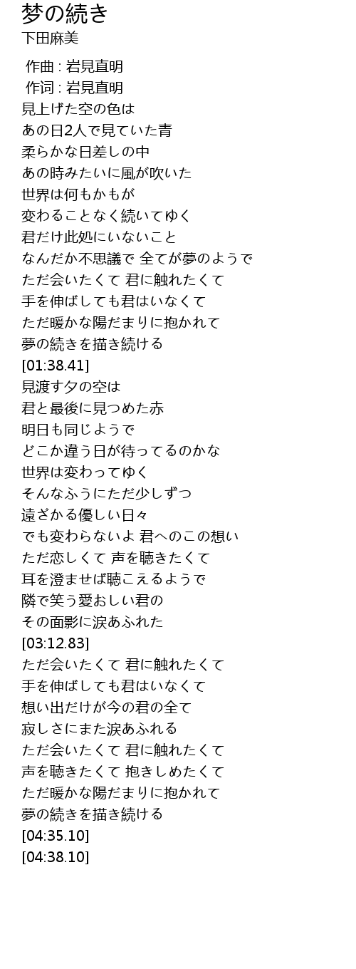| [03:38.63] | ただ会いたくて 君に触れたくて |