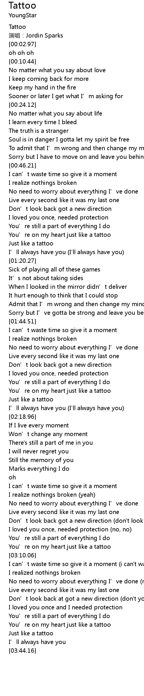 | [03:07.11] | You' re on my heart just like a tattoo |
