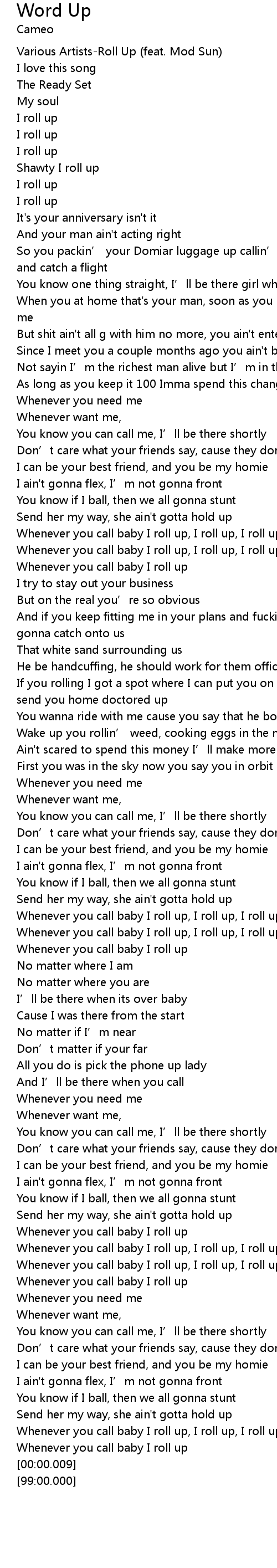 | [01:03.83] | Whenever you call baby I roll up, I roll up, I roll up |